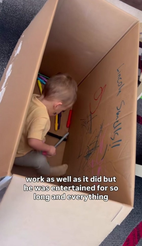 “Nisam očekivala da će ovo funkcionisati baš ovako dobro. Moj mališan je dugo bio zaokupljen crtanjem po unutrašnjosti kutije”, objasnila je ona.