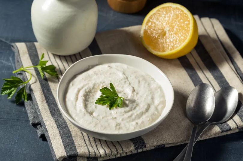Otopite neslani puter i umiješajte glatko brašno. Postepeno dodajte mlijeko i pavlaku, miješajući dok se ne zgusne. Sklonite sa ringle i dodajte so, šećer, mljevenu slačicu, biber i malo muskatnog oraščića. Umiješajte pripremljeni ren i svjež limunov sok. Ohladite i čuvajte u zatvorenoj posudi.