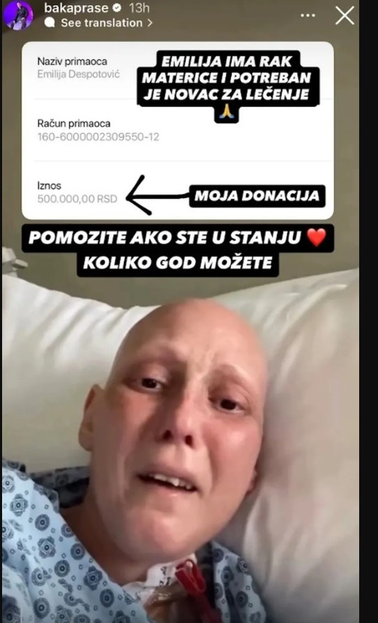 – Emilija ima rak materice i potreban joj je novac za liječenje. Pomozite ako ste u stanju, koliko god možete – poručio je Baka Prase pa pokazao koliko je on donirao.